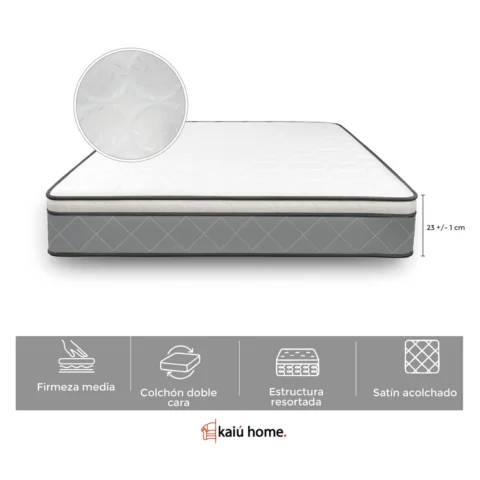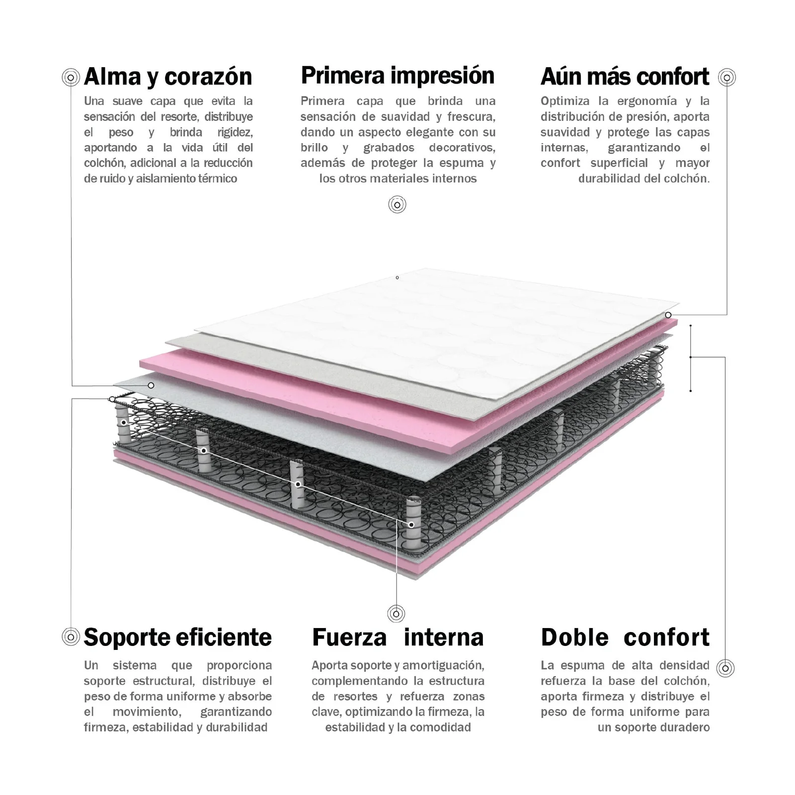 Incluye Base Cama + Espaldar + Colchón Resortado + Protector + Almohada.