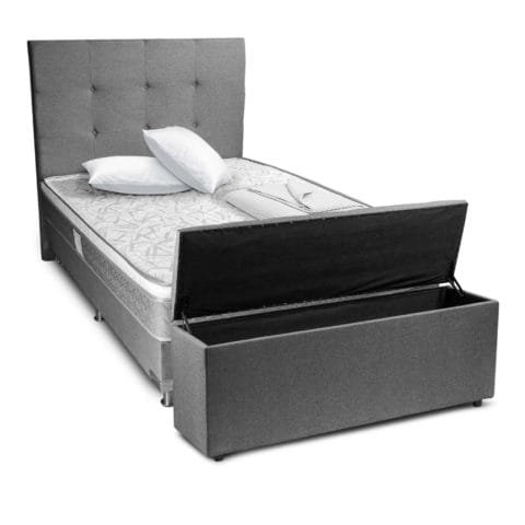 Base Cama + Espaldar + Colchón Resortado + Puff Baúl + Protector + Almohada.