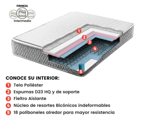 Combo ideal para personas que gustan de productos de buena calidad a precios comodos, colchon elaborado con resortes de acero resistentes, base cama fabricada en madera certificada y tratada brindado durabilidad y resistencia.
