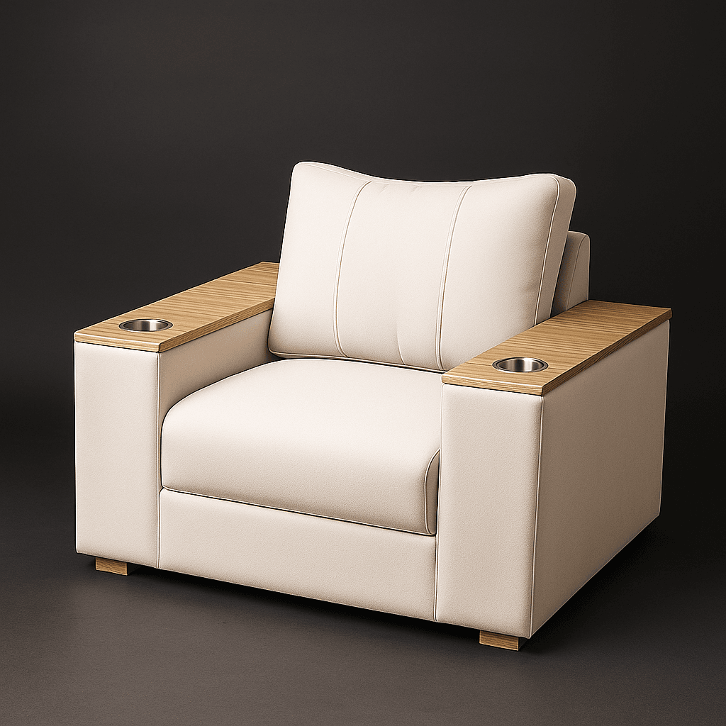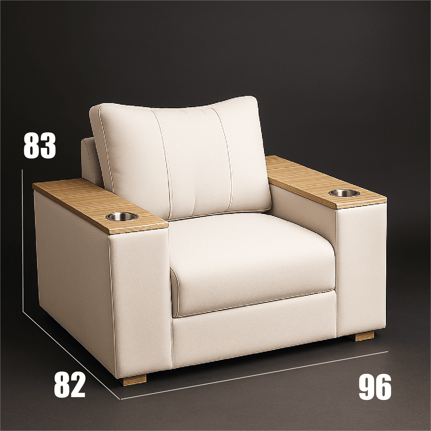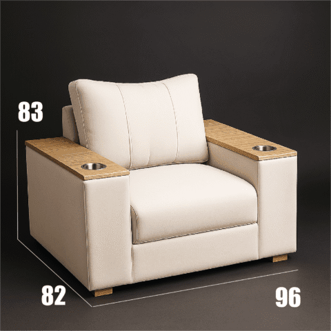 Poltrona tapizada en tela tipo velvet, con brazos en madera y portavasos adaptable a cualquier estilo de decoración, aportando calidez y personalidad a tu espacio.