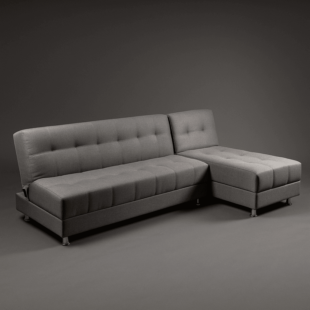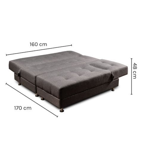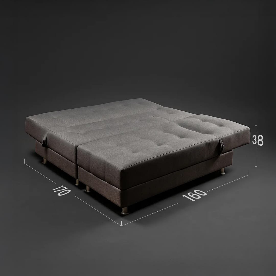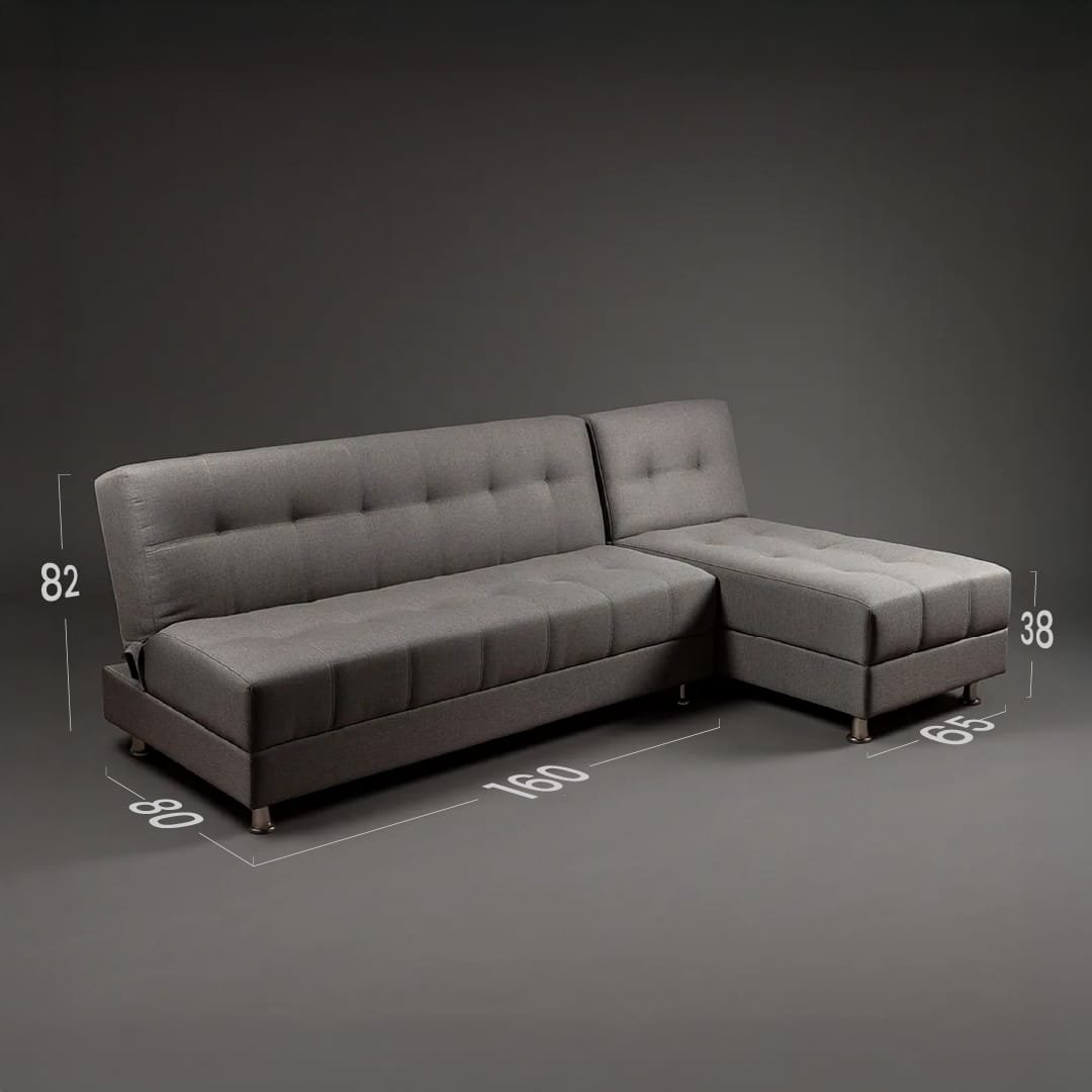 Sofa cama diseñado para que de manera facil tengas dispoble una cama para dos personas, elaborado en tela tipo lino, patas en acero cromado, espumas de alta densidad y madera seca en horno con tratamiento.