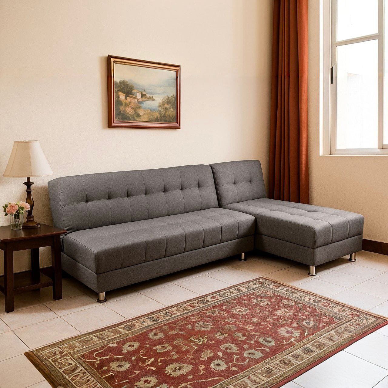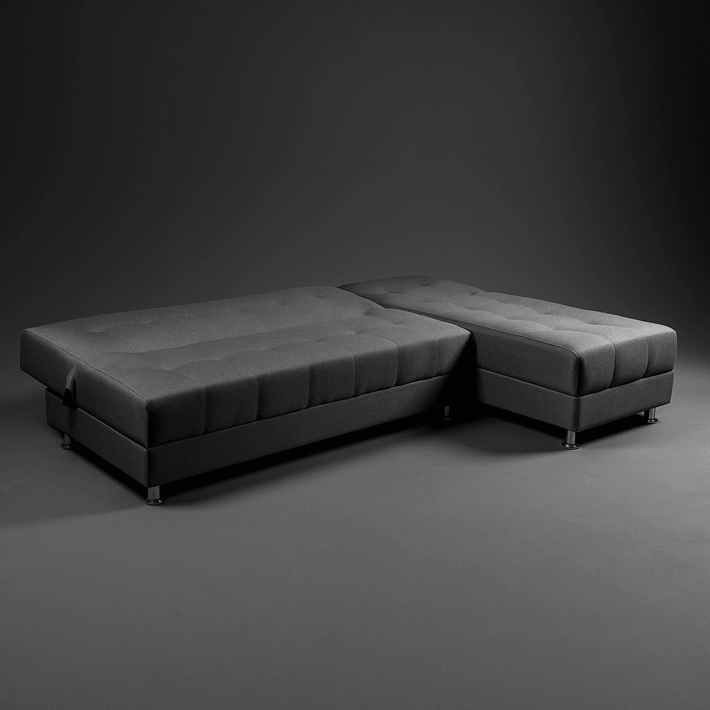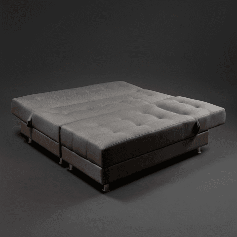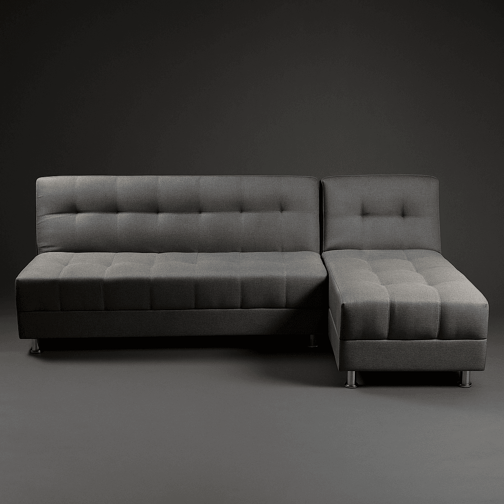 Sofa cama diseñado para que de manera facil tengas dispoble una cama para dos personas, elaborado en tela tipo lino, patas en acero cromado, espumas de alta densidad y madera seca en horno con tratamiento.