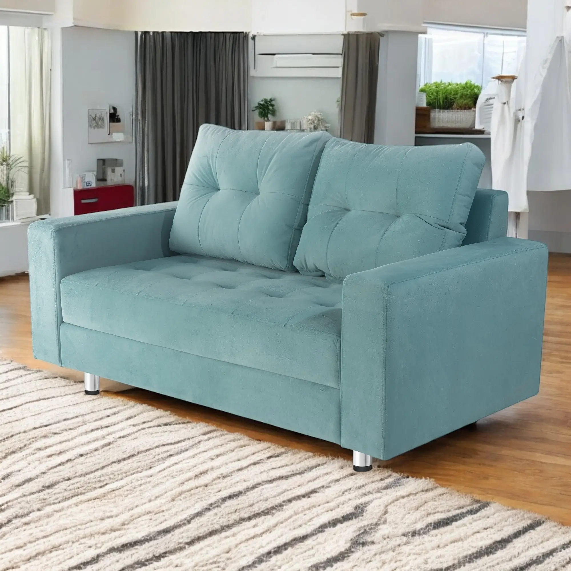 El Sofá Aqua ofrece comodidad y estilo a un precio accesible. Con tela suave y patas de acero cromado, es perfecto para cualquier espacio sin renunciar a la calidad ni al diseño.