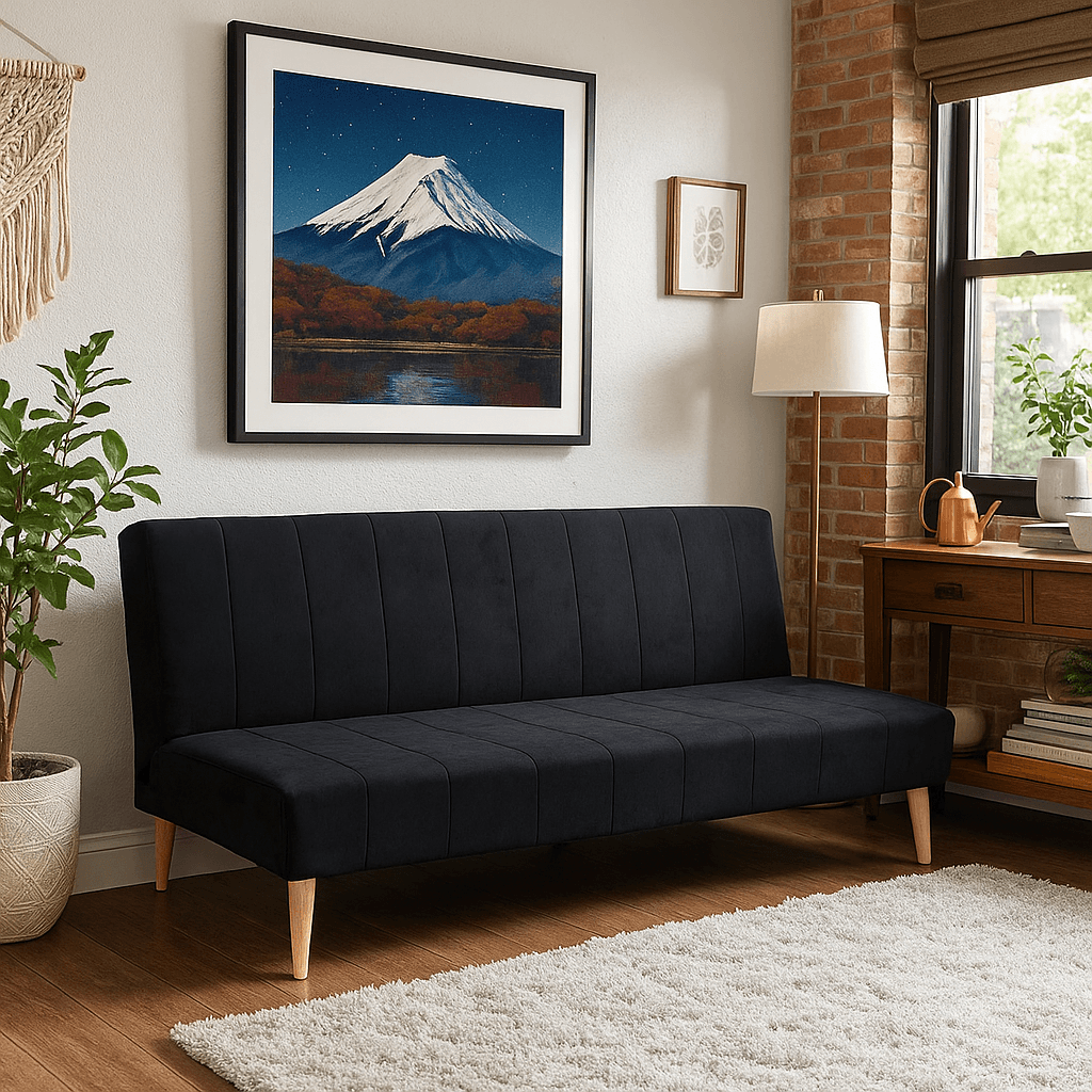 Transforma tu espacio con el equilibrio perfecto entre estilo y confort. Su diseño sobrio y elegante, tapizado en tela súper suave, invita al descanso y se adapta con facilidad a cualquier ambiente. Con tres posiciones de reclinado y patas de madera sólida, este sofá cama ofrece funcionalidad, calidez y un toque contemporáneo que realza tu hogar.
