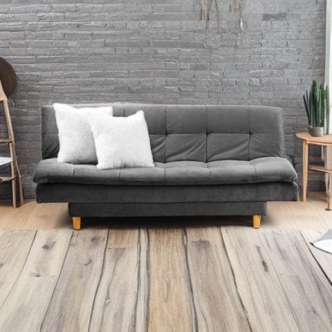 Sofá Cama con sistema de apertura Click Clak, tela de buena calidad suave al tacto, estructura 100% madera, espumas certificadas que conservan su forma.