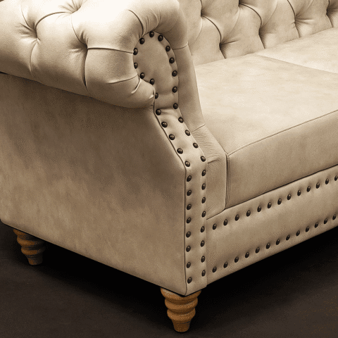 - La Estructura del Sofá Chester es elaborado en pino secado en horno con tratamiento especial.