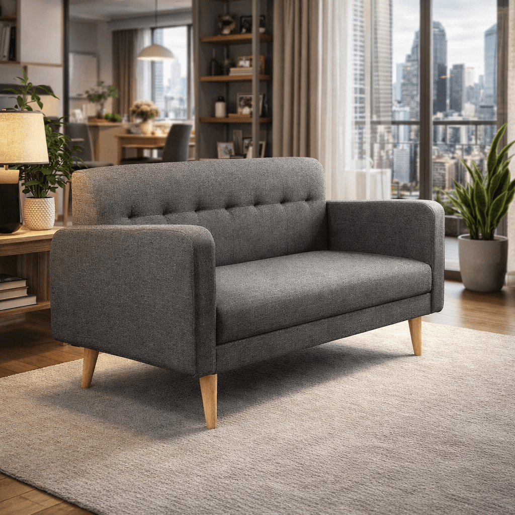 Sofá elaborado en materiales certificados, estructura en madera seca y tratada, tapizado en tela tipo Lino de alta durabilidad y suave al tacto, diseño con estilo contemporáneo que brinda comodidad y confort con colores que se adaptan a cualquier tipo de decoración de tu hogar.
