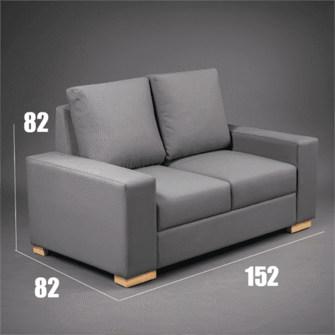 Sofa elaborado en cuero sintético anti rasguños, espumas de alta densidad, patas en roble, madera seca en horno con tratamiento. Este cuero sintético ofrece mayor resistencias a los rasguños, sin embargo no existe ningún material que bajo condiciones de uso inadecuados no se averie.
